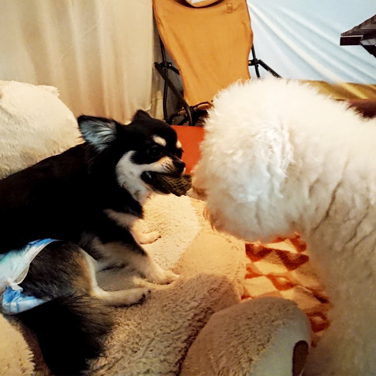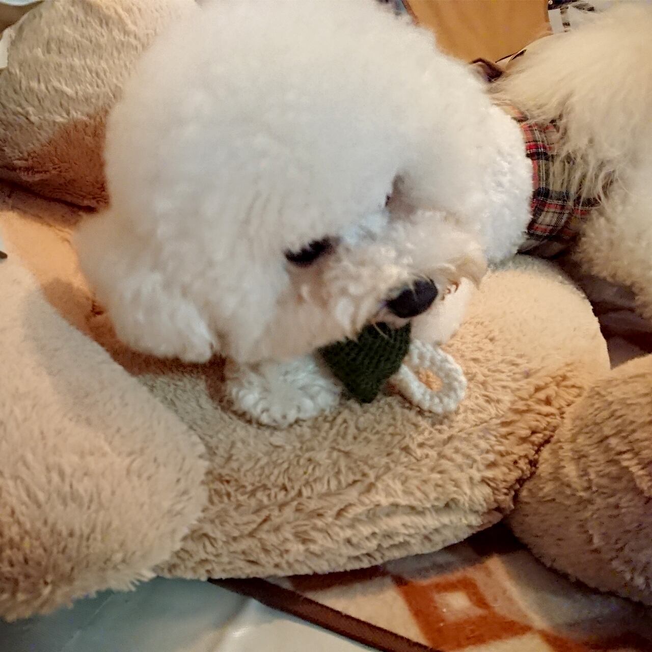 ・噛む力の強いワンちゃんが遊ぶ場合や思い切り強く引っ張るような遊び方をすると、毛糸が切れ編み目がほどけてくることがございます。誤飲や誤食事故のないよう、十分ご留意いただいたうえで遊ばせてください。おもちゃを与えている間オーナー様は目を離さないようお願いいたします。