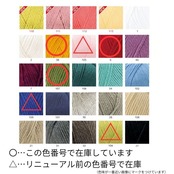 △印は画像の色味へリニューアルする前のものを在庫しております。一番近い色味のものに印をつけていますが、仕上がりの色に不安がある方は〇印のカラーからお選びください。