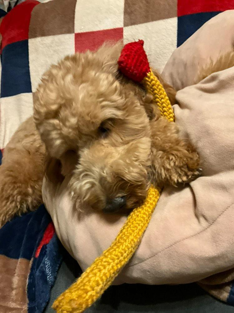 ・噛む力の強いワンちゃんが遊ぶ場合や思い切り強く引っ張るような遊び方をすると、毛糸が切れ編み目がほどけてくることがございます。誤飲や誤食事故のないよう、十分ご留意いただいたうえで遊ばせてください。おもちゃを与えている間オーナー様は目を離さないようお願いいたします。