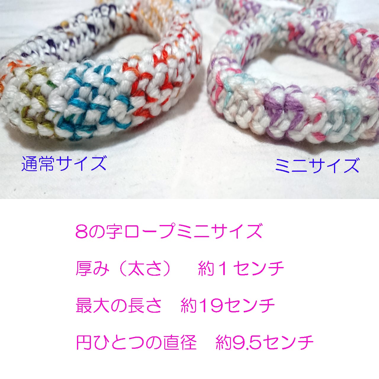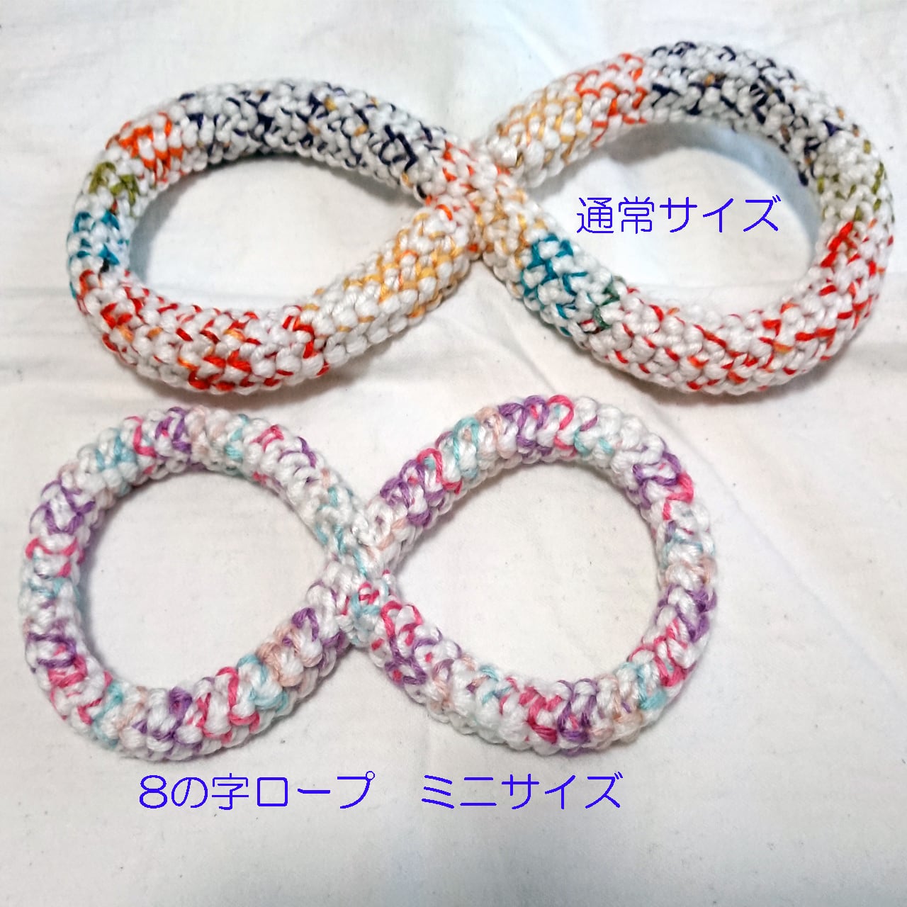 ※画像3枚目以降の色組み合わせ見本は「8の字ロープ」(通常サイズ)で撮影しております。