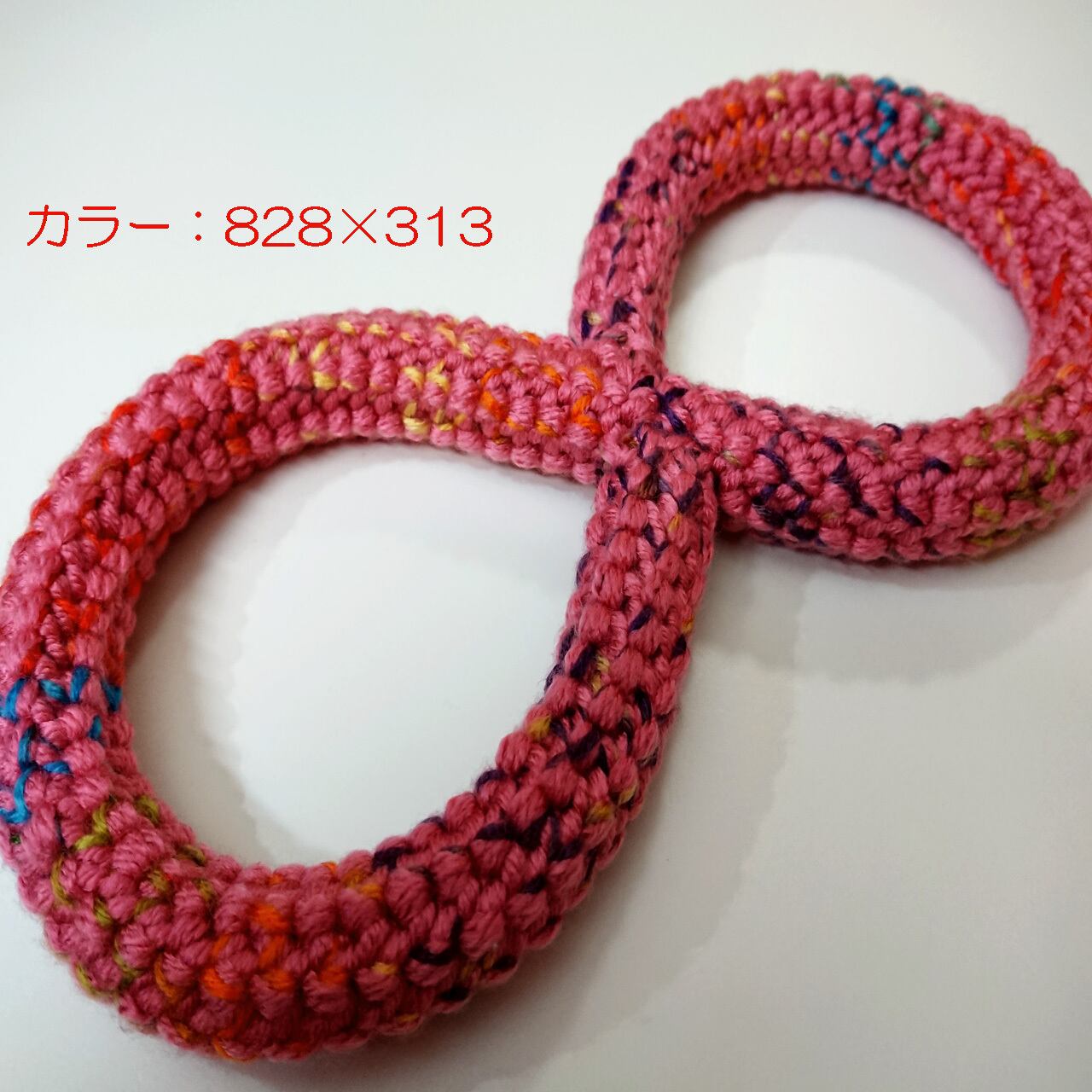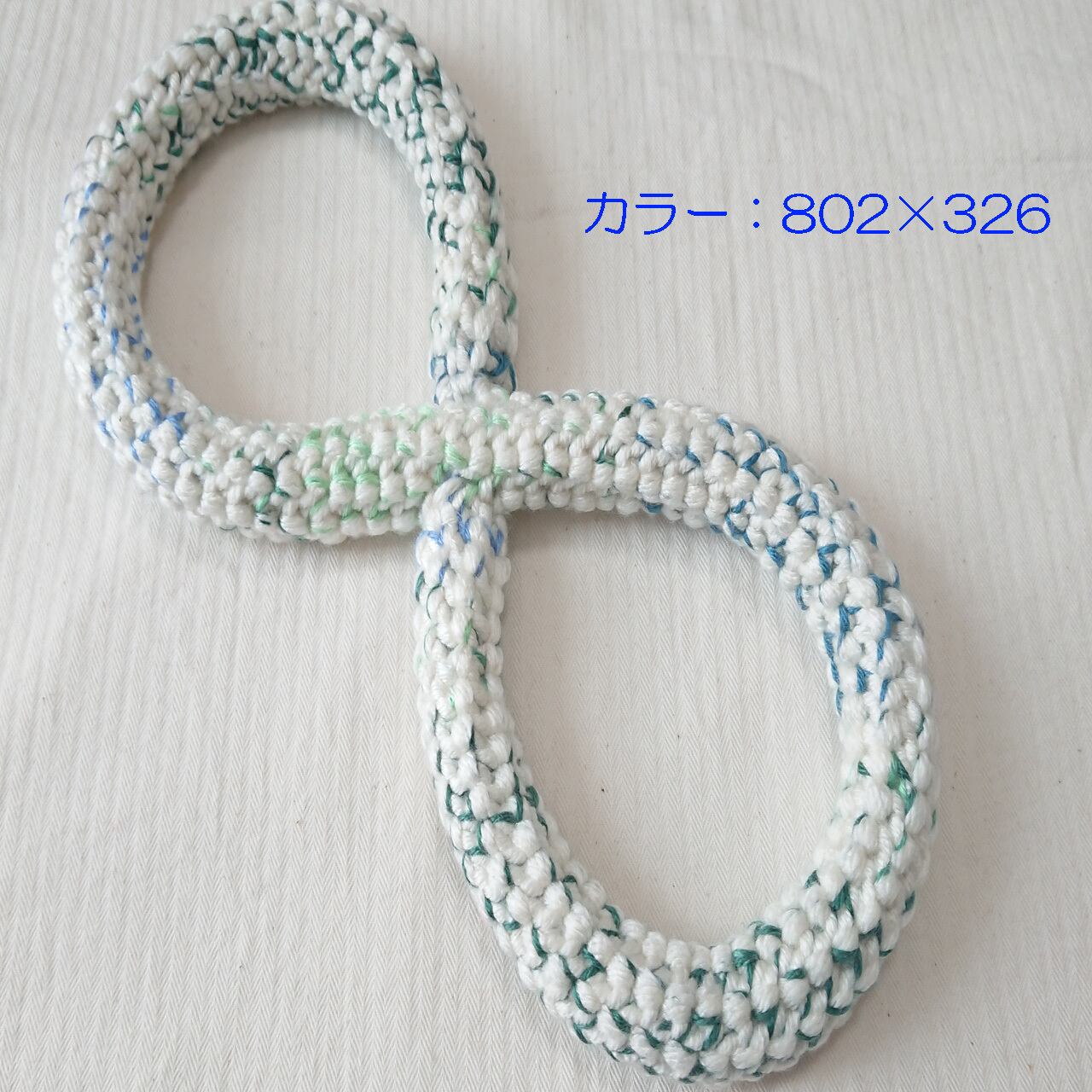 「エコテックス規格100 クラス1」を取得した毛糸でロープ状に編んだ8の字型おもちゃです。
