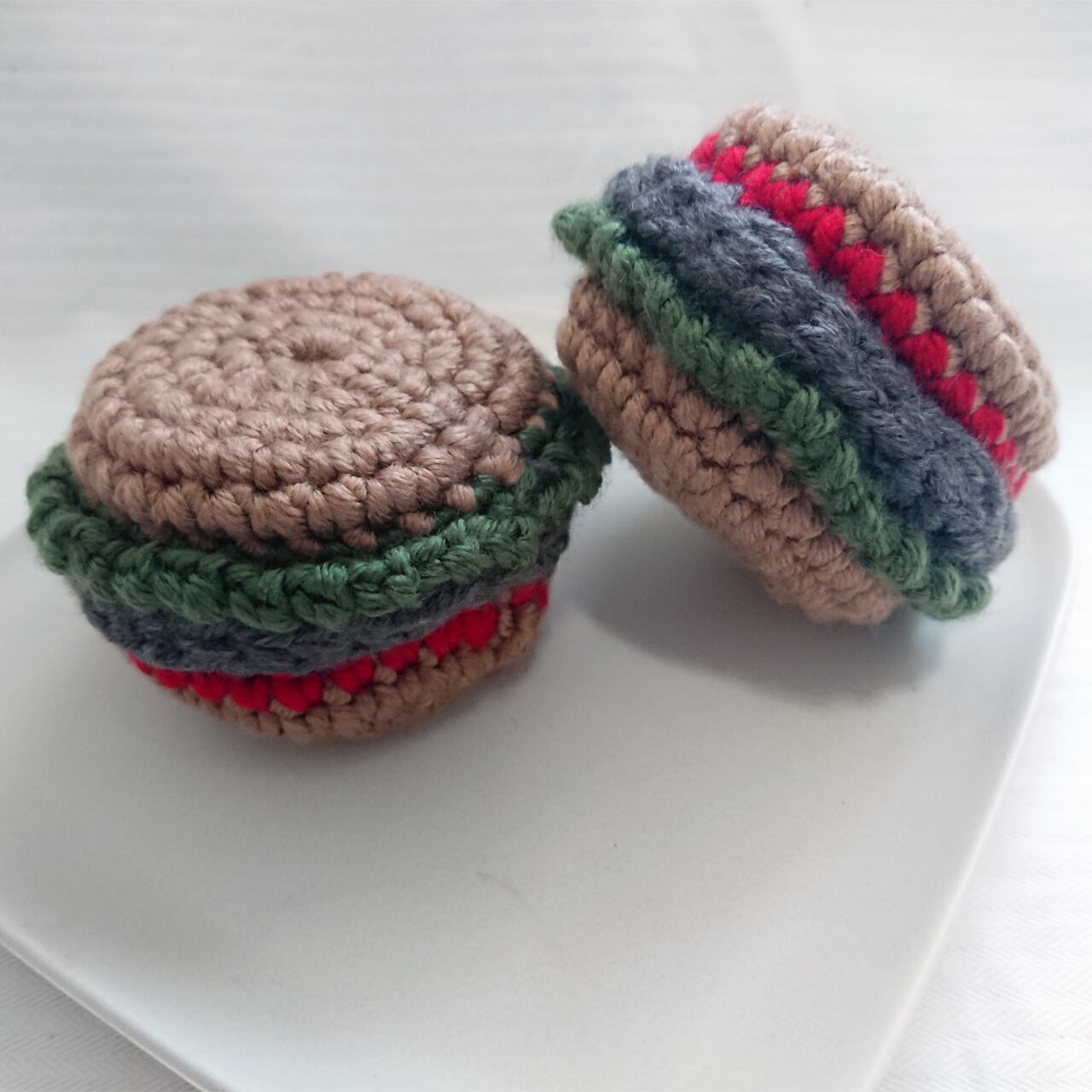 「エコテックス規格100 クラス1」を取得した毛糸で編んだ、ハンバーガー型おもちゃです。